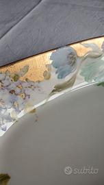 VENDO CENTROTAVOLA IN PORCELLANA BIANCA CON MOTIVI FLOREALI DI COLORI DIVERSI (AZZURRO ROSA TURCHESE) SU PROFILO DORATO . ADATTO A DIVERSI USI (SVUOTA TASCHE O PORTA DOLCETTI ECC).