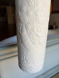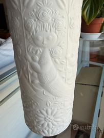 Rosenthal vaso in porcellana bianca a rilievo con figure e fiori. Vaso cilindrico in porcellana bianca, rilievo con ricco motivo floreale e figure stilizzate. altezza 34 cm