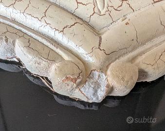 Rosone Decorativo Vintage in Gesso con Motivi Floreali.Realizzato in gesso finemente lavorato, con un motivo centrale circondato da una ghirlanda di fiori e foglie in rilievo, con sfumature di colore pastello. un angolo è leggermente danneggiato come si può vedere dalla foto.