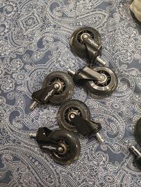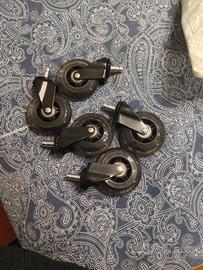 Vendo due set di ruote in gomma per sedia da scrivania, montano su sedie Ikea. Sono specifiche per non graffiare il parquet, inoltre rendono la sedia molto più scorrevole. Vendo per inutilizzo. 20 euro un set, 30 euro per entrambi.