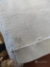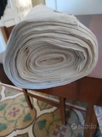 Rotolo antico di tela in cotone, tessuto a mano al telaio dal corredo della nonna. Adatto per runner, tende, tovaglie, asciugamani. La lunghezza dovrebbe essere di 30 m, (come risulta da un numerino scritto all'angolo) e largo 74 cm. Peso circa 3kg Da rinfrescare.