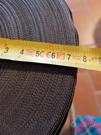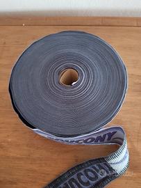Rotolo industriale di nastro jacquard originale SAUCONY, larghezza 5,5 cm, lunghezza stimata circa 64 metri. Logo storico SAUCONY in maiuscolo, tessuto direttamente nella trama, versione pre-2007. Materiale tecnico in poliestere, resistente e flessibile, adatto per applicazioni su spallacci, manici, passanastri, lanyard, accessori sportswear e progetti di customizzazione. Ideale per maker, sarti, upcycler e appassionati di sneakers in cerca di un dettaglio vintage autentico per i propri progetti.