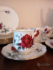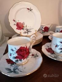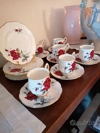 Set da caffè 18 pezzi con 6 tazzine, 6 piattini e 6 piatti da dolce diametro 16 cm. Ottime condizioni ( solo una tazzina ha una piccola imperfezione, quasi invisibile).