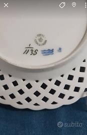 Raro e antico piatto blue fluted con bordo traforato e dipinto a mano in fine porcellana Royal Copenhagen.