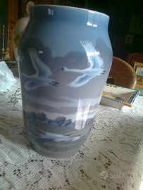 Royal Copenhagen"- Denmark - Vaso "cigni in volo" anni 60/70 - Splendido vaso della Royal Copenhagen, originale autentico, decoro con cigni in volo, soggetto prodotto dal 1969 per pochi anni. Codice 1955/1217. il vaso luminosissimo è in PERFETTE condizioni in quanto da sempre conservato in vetrina. Sulla base il marchio della celebre corona sopra tre linee ondulate blu e le iniziali del pittore.