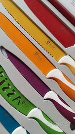 Cofanetto completo, mai usato, comprensivo di coltello schef, coltello pane, coltello carne, coltello pizza, coltello verdura, coltello per spelare, spelapatate