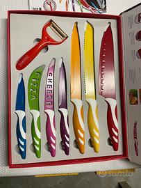 Set di sette coltelli da cucina piu un pelapatate realizzati dalla svizzera Realyty Line , cin trattamento antibatterico