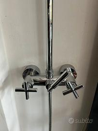 Rubinetteria Dornbracht per doccia composta da soffione e rubinetteria esterna in acciaio cromato.