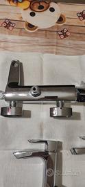 Come da titolo, vendo miscelatori La Torre modello Studio per bagno: miscelatore lavabo, miscelatore bidet e gruppo vasca. I miscelatori sono usati e presentano segni evidenti di usura causati dall'acqua, ma funzionano perfettamente. Nuovi hanno un costo che va dalle 100 euro a salire per ogni singolo miscelatore.