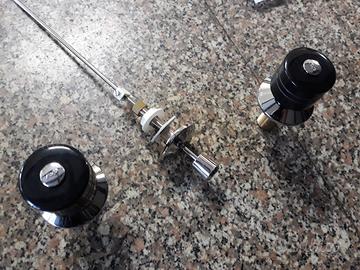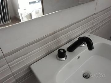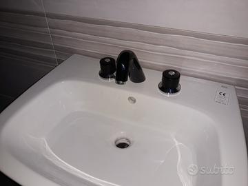 Rubinetteria con maniglie nuova per lavabo, bidet e vasca nero e cromo. La rubinetteria comprende le pilette e accessori vari per il montaggio; nel gruppo vasca è compreso la doccia con flessibile, il gancio per appendere la doccia al muro