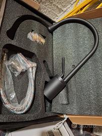Rubinetti per lavabo e per bidet. In acciaio inox nero lucido. Completi di accessori di montaggio. Nuovi, mai montati e ancora nella scatola.