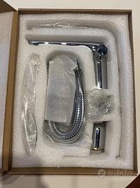 Rubinetteria bordo vasca cromo, 3 elementi, miscelatore e doccetta estraibile, Invena Siros. Nuova. Vendo per cambio progetto ristrutturazione bagno.