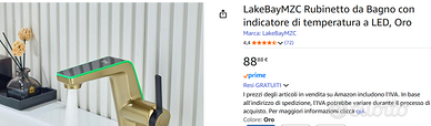 NUOVO – MAI UTILIZZATO E NELLA SUA CONFEZIONE ORIGINALE Display digitale LakeBayMZC LED : questo indicatore di temperatura a LED non richiede batterie o prese di corrente, è alimentato dal flusso d'acqua e accende l'interruttore per visualizzare la temperatura e illuminare il display. Mostra esattamente 0 – 30 gradi in blu, 31 – 40 gradi in verde e 41 – 50 gradi in rosso. Migliora l'atmosfera della stanza e dona relax. 2 tipi di getti d'acqua: il rubinetto per lavabo con 2 aeratori di cui un getto doccia. L'erogatore di alta qualità garantisce un flusso d'acqua più uniforme senza schizzi, il rompigetto può essere svitato con la chiave nella confezione per facilitare la pulizia o la sostituzione Materiale particolarmente durevole: il rubinetto da bagno LakeBayMZC è realizzato in Zinco, la superficie è liscia, antigraffio, antiruggine. La superficie in oro spruzzato a più strati assicura che non sbiadisca o si sfaldi e mantenga la brillantezza di lunga durata e dona al vostro bagno un tocco più elegante e solenne. Valvole in ceramica durevole: sono testate a 500.000 cicli, il che significa che durano molto più a lungo rispetto alle valvole tradizionali. Risparmia fino al 30% di acqua e garantisce un'efficiente distribuzione dell'acqua senza compromettere le prestazioni. Facile installazione: attacco 3/8” e H & C caldo, istruzioni sono incluse in ogni rubinetto del bagno e è possibile seguirle per completare l'installazione in meno di 10 minuti. È semplice, non richiede un professionista e risparmia i costi di installazione Materiale sano e senza piombo. Prezzo di mercato: 88,88€. Vendo, nella condizione di NUOVO, a 50€.