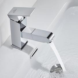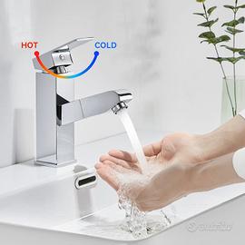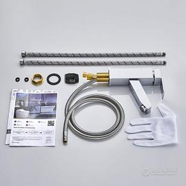 Rubinetto Lavabo con Doccia Estraibile, Rubinetto Bagno Ottone Cromato Miscelatore Lavabo Acqua Fredda e Calda Rubinetti per Bagno, Modello UE.