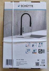 Rubinetto da cucina SCHÜTTE modello GLASGOW 79586, moderno ed elegante, con finitura nera e beccuccio flessibile soft touch.