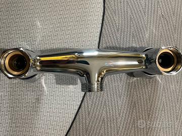 Vendo rubinetto da cucina a muro di colore argento cromato lucido. Il rubinetto presenta qualche graffi. Misura interasse 15 cm.