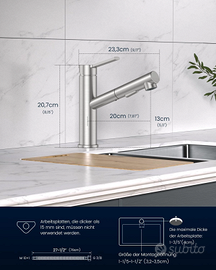 Rubinetto da cucina DAYONE con doccetta estraibile, rubinetto da cucina ad alta pressione in acciaio inox SUS304, rubinetto per lavello con 2 modalità di spruzzo, miscelatore girevole a 120° per cucina, spazzolato