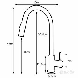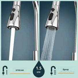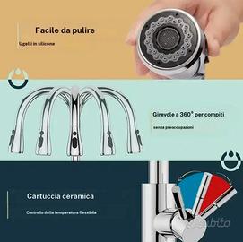 Rubinetto da cucina rimovibile in acciaio inox 304, miscelatore per lavabo, caldo/freddo, con ugello girevole, incluso Tubi di collegamento e accessori, per accessori da cucina, argento