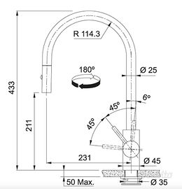 Rubinetto Franke Eos Neo Acciaio Inossidabile a collo di cigno,con pratica doccetta estraibile, montato in casa per errore, usato circa sei mesi, infine sostituito con quello giusto.