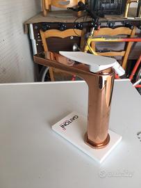 Rubinetto lavabo colorato e manigli con colore diverso senza piletta con flessibili.Visto e comprato.