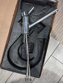 Rubinetto miscelatore in acciaio inox, ideale per il lavello in cucina o altrove.