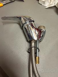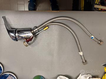 Rinibetto miscelatore da cucina in acciaio, con attacchi tubi acqua calda e fredda , funzionante . Sostituito per cambio modello .