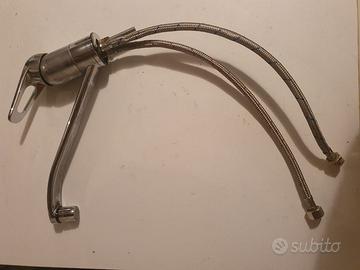 RUBINETTO MISCELATORE LAVELLO CUCINA MONOFORO IN ACCIAIO INOX DOTATO DI AERATORE FRANGIGETTO E DI RACCORDI LUNGHEZZA CANNA CM. 25