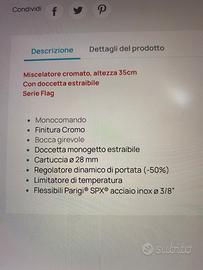 Miscelatore in acciaio marca nobili, modello FL96127CR, caratteristivhe e prezzo su immagini annuncio, come nuovo