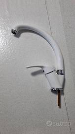 Rubinetto Miscelatore Plados Telma Neomix colore Bianco in materiale ultragranit che si abbina ai lavabi in pietra bianca.