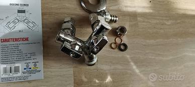 rubinetto sottolavabo doppio, per collegare un miscelatore e una lavatrice oppure due miscelatori, attacchi orientabili, completo di adattatori e con due levette per chiudere separatamente l'acqua, ottime condizioni, usato solo per un breve periodo