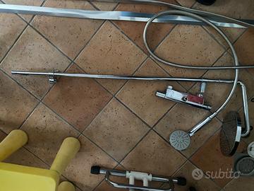 Struttura fissa con misure 108x35, diametro 20cm e doccino di diametro 10 cm. Per le manopole 20 cm di lunghezza totale con a sx quella dedita all’apertura e alla chiusura mentre a dx quella per la temperatura desiderata