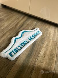 La scritta "Figli del Vesuvio" segue la silhouette del vulcano, realizzata interamente a mano con la tecnica del Tufting.