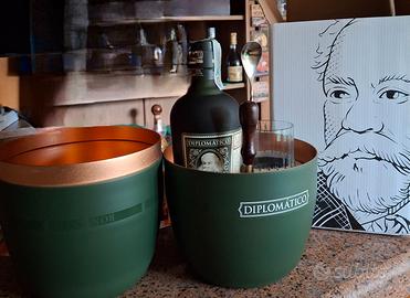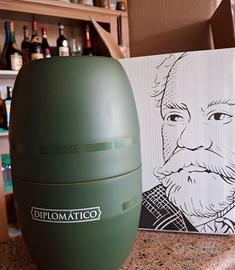 Nuovo, in confezione originale,pack premium esclusivoper i grandi appassionati che comprende: unabottiglia di Reserva Exclusiva, unbarspoonper la miscelazione, untimbro ice cubein ottone con manico in legno eunthumbler bassotargato Diplomático, nato con l'idea di contenere l'omonimo cocktail del pack, l'Old Fashioned.
