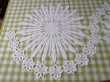 Centrotavola Runner Uncinetto Crochet fattoamano Artigianato Italiano cm107x49.