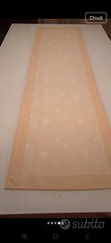 Bellissimo runner di cotone misure 145x40. Motivo shabby delicato, nei toni del beige e crema. Con confezione regalo.