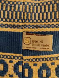 Runner da tavolo "Tessuti Sposini"cm. 90x35 con nappe e palline di ceramica Deruta. Lavorazione al telaio, in San Valentino della collina (PG).