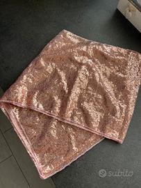 Runner da tavolo oro rosa con pailettes Misure: 30x275cm circa Disponibili 13 pezzi, acquistabili sia come set che singolarmente. Pari al nuovo