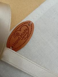 Elegante runner da tavolo in cotone con pizzo panna e dorato con fiocchi in raso con rosellina fatta a mano