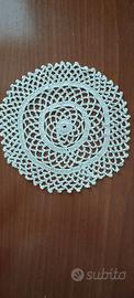 Runner da tavola, credenza, comò, misure 125 x 40 cm. +2 centrini diametro 20 e 24 cm., tutti vintage lavorati a mano all'uncinetto + 4 uncinetti da 1mm. al 2 mm. + 4 riviste vintage anni '80 del settore, vendo anche separatamente, no spedizioni