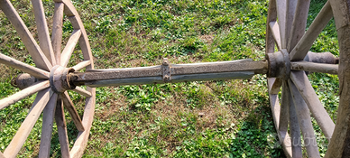 -Vendo ruota di legno carro antico in ottimo stato diametro 90 cm a 60 euro -Assale delle 2 ruote da 100 cm a 60 euro(le ruote le ho vendute)