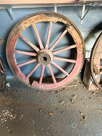 Vendo 2 ruote di carro antiche originali, in legno con cerchione in metallo, diametro 120 cm.