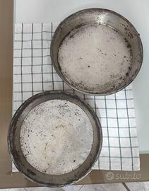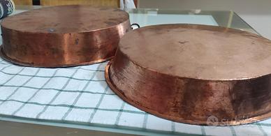 Coppia di Ruoti in rame con anello. Diametro e altezza 33cmx6cm il più piccolo e 35cmx6cm il più grande. 50€ la coppia