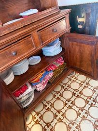 Rustica credenza con alzata in legno massiccio