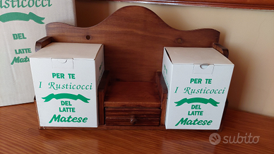 Vendo gadget promozionale del latte Matese Nuovo, ancora in confezione originale Perfette condizioni Composto da due rusticocci ed espositore in legno