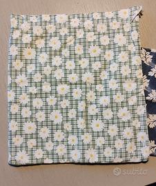 2 sacchetti in tessuto doppio strato con all'interno foglio di plastica. Ideali per la conservazione di pane e formaggio. Misurano 38 x 31 cm il piccolo e 40 x 44 il grande. Ottime condizioni ad eccezione di due piccole lesioni, come da foto, sul sacchetto più grande. Vendo anche separatamente a 7 euro il grande e 5 euro il piccolo.