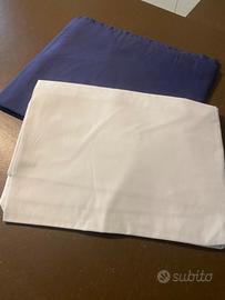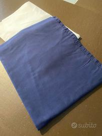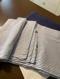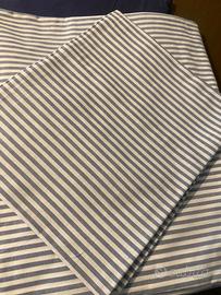 Vendo sacco per piumino letto singolo a righe bianche e blu, più federa e lenzuolo con angoli bianco Ikea. In regalo lenzuolo blu.