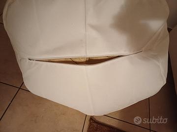 Vendo sacco poltrona finta pelle bianco in buono stato . Sfoderabile come da foto tramite cerniera. Diametro cm 80 e parte piena altezza cm 50. NON spedisco 30 euro AFFARE per ricerca : arredamento casa
