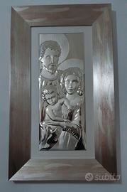 Vendo, (se di fuori provincia contattarmi per eventuale spedizione) SACRA FAMIGLIA BELLISSIMA stilizzata moderna in Argento an ag25 g 69 cornice in legno chiaro. Solo sulla cornice sono presenti piccoli segni di normale usura, praticamente impercettibili che a distanza nella visione globale si confondono con la lavorazione della cornice (ma che per correttezza dichiaro e documento). Misure: 42x72x3,5. Peso: kg.2,400+peso imballo da considerare. Il valore reale, data la bellezza dell'opera, va comunque ben oltre le 20 euro, SOLO su BARI e limitrofi o eventualmente anche su Polignano e dintorni. NO PERDITEMPO!