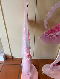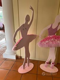 Sagome ballerine in legno con base fissa decorate a mano colore rosa e fucsia, altezza cm 175 (dalla base alla mano alzata)piccola imperfezione alla base delle scarpette, ma impercettibile
