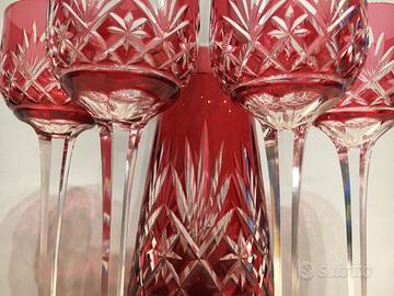 Superbo servizio da vino in cristallo tagliato con bordi rossi